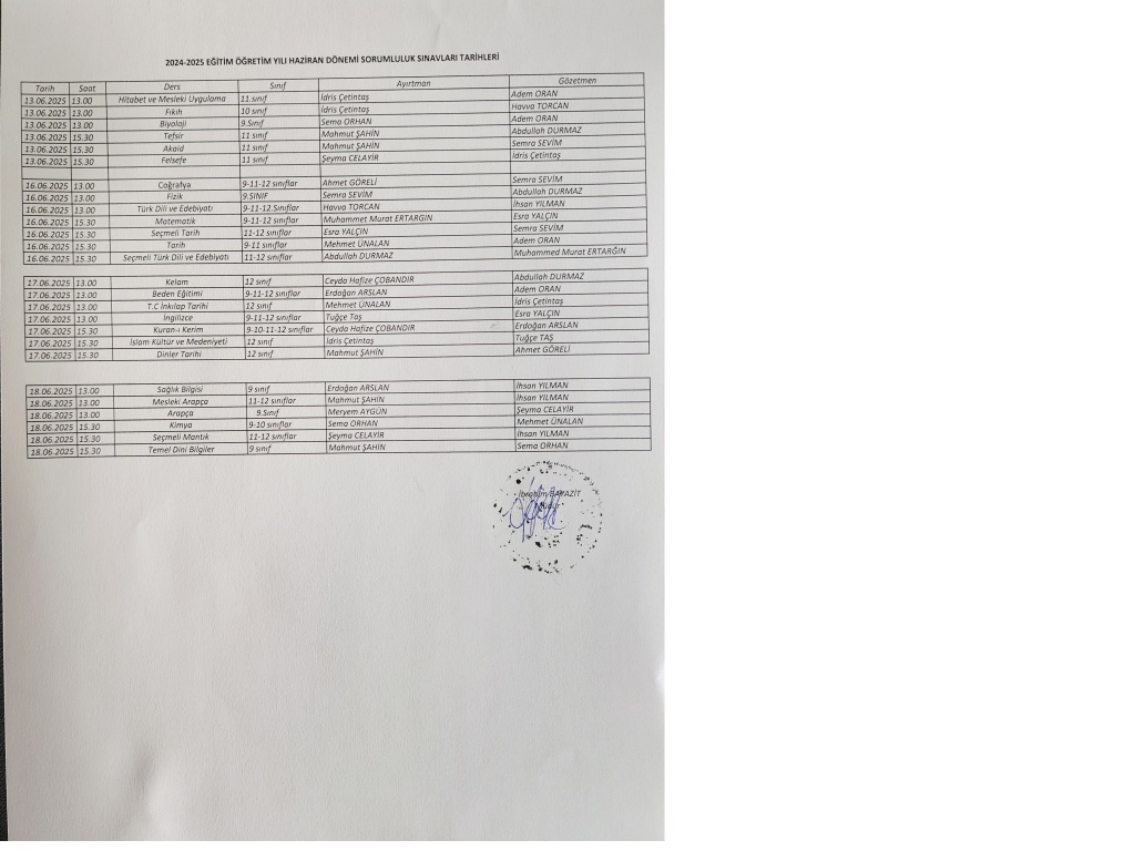 2024-2025 Eğitim Öğretim Yılı Haziran Ayı Sorumluluk Sınavları!